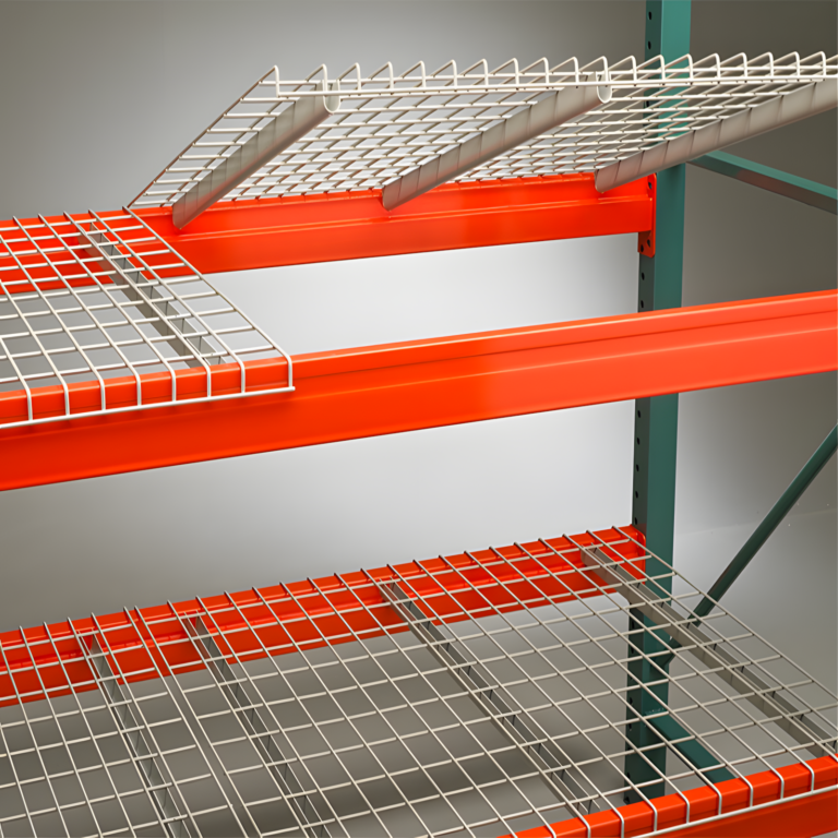 Wire mesh decking creates a stable surface across pallet rack beams, allowing goods to sit securely without blocking airflow or light. Its open-grid structure supports better load distribution while making inventory easier to see and access.